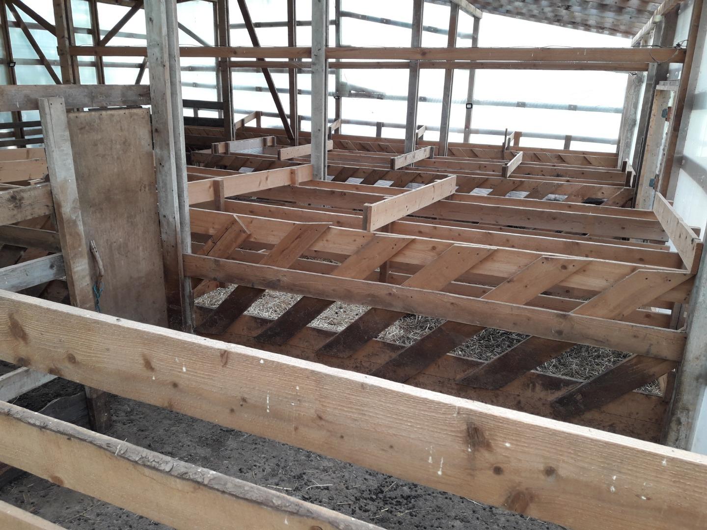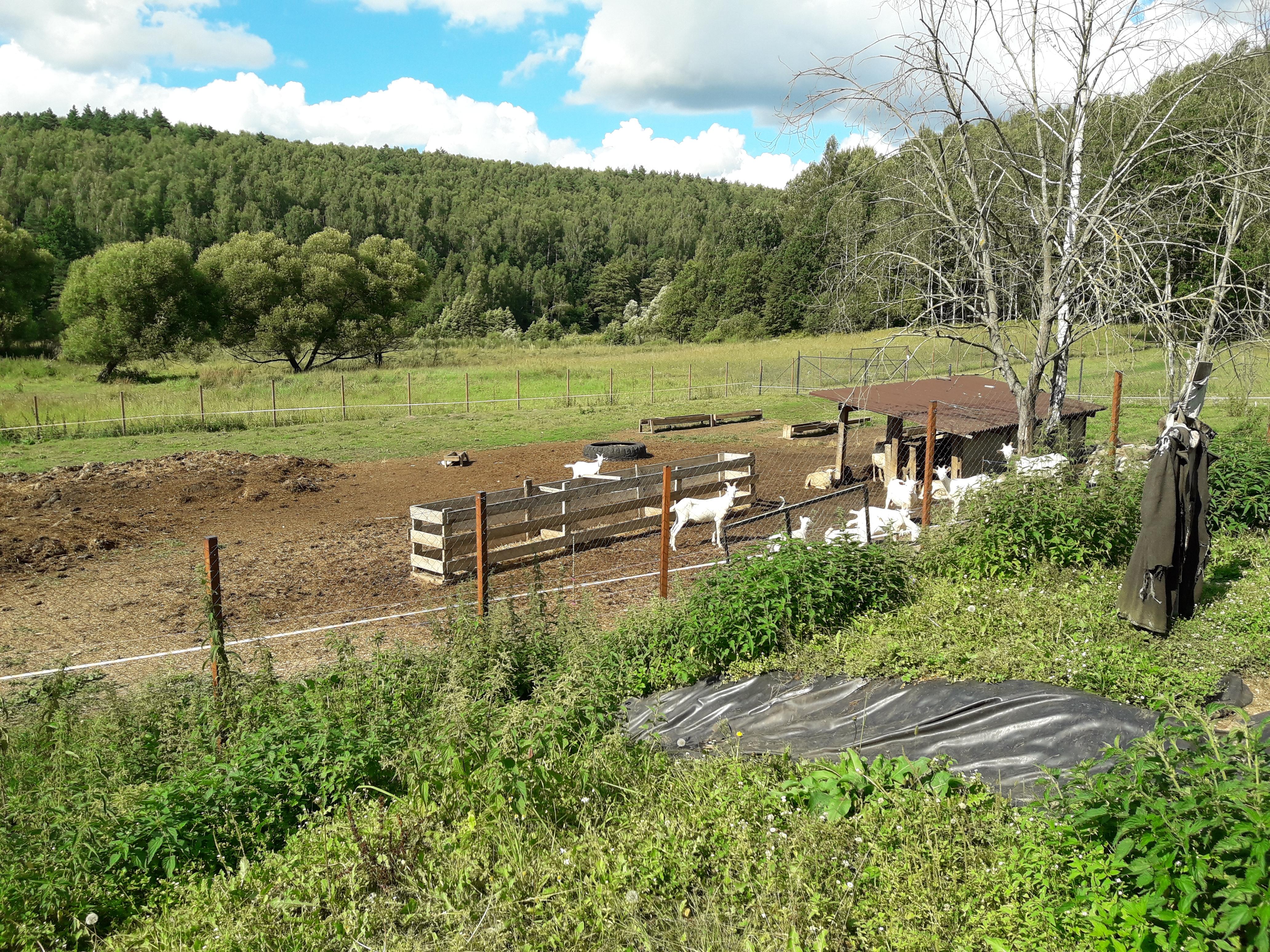 Овчарня 12х18 м2, с экономичными кормушками (найдено в интернете, испытано и доработано. Расход сена уменьшился на 80-90%). Стены овчарни из двух слоев 8-мимиллиметрового поликарбоната с воздушным зазором в 4 см. Установлено ночное освещение и видеокамера как внутри, так и снаружи (для наблюдения участков отдыха. Всего сменных 3 участка, практически равной площадью по 12-15 соток, разделены сеткой-рабицей и воротами. Основной выпас производиться на граничащих полях порядка 6 Га, в том числе и своих;