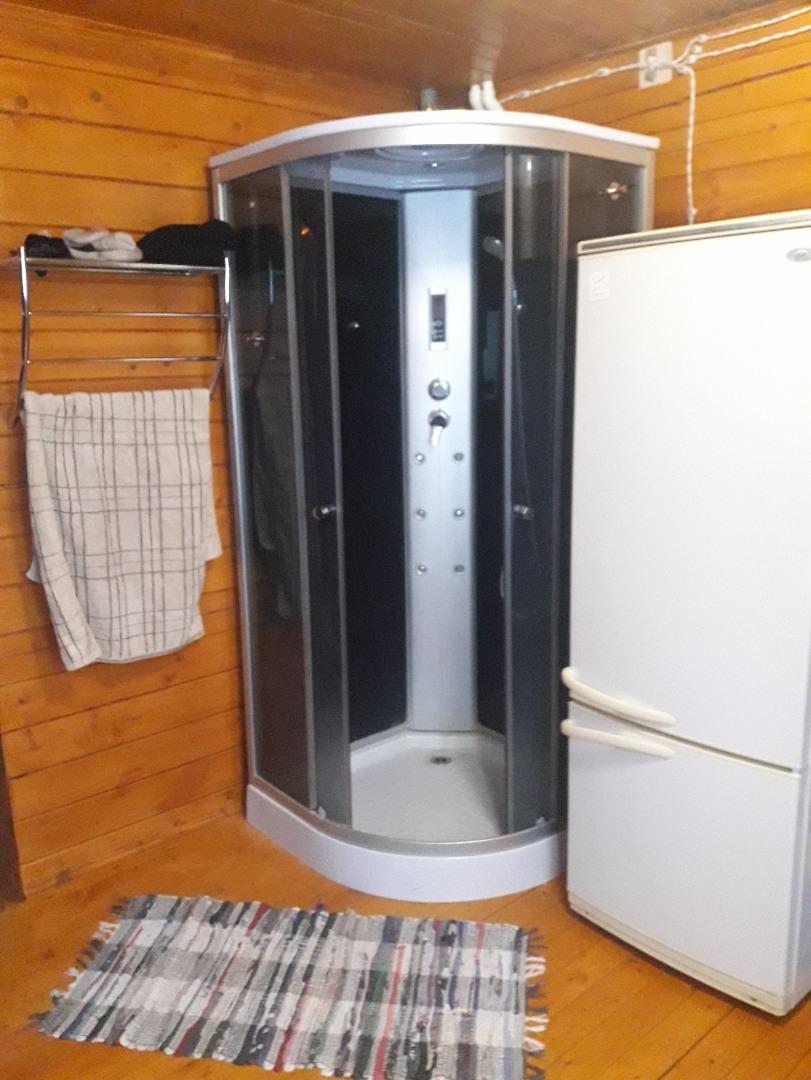 Санузел-постирочная, с гигиеническим душем и музыкальным центром для сауны