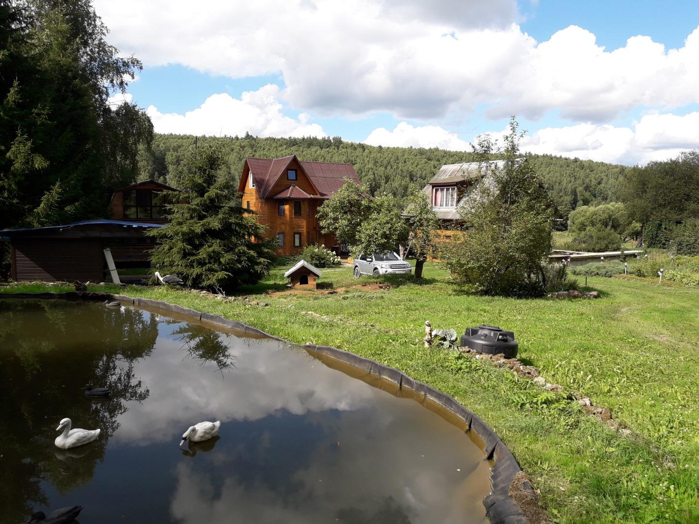 Пруд ПРОТОЧНЫЙ, глубиной 2,7 м, 12х18 м2 для содержания рыбы. Без проблем выращивали на протяжении 7-ми лет стерлядь, форель, белый амур, карп, карась (закупал в рыбсовхозе мальками). Есть водоочистка.