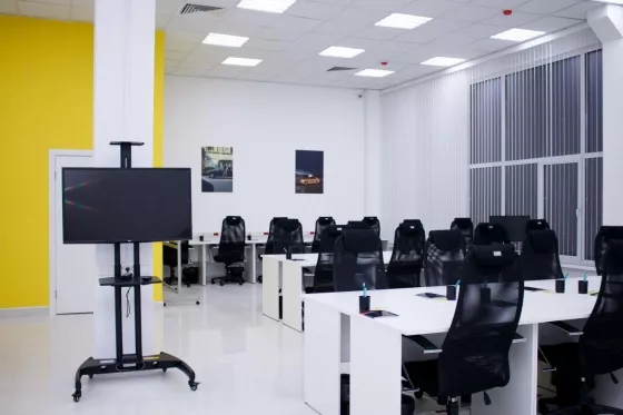 144 кв.м., планировка: рабочая зона (1 комната большой площади) + кухня и серверная. 1000 рублей/кв.м. + электроэнергия и уборка.