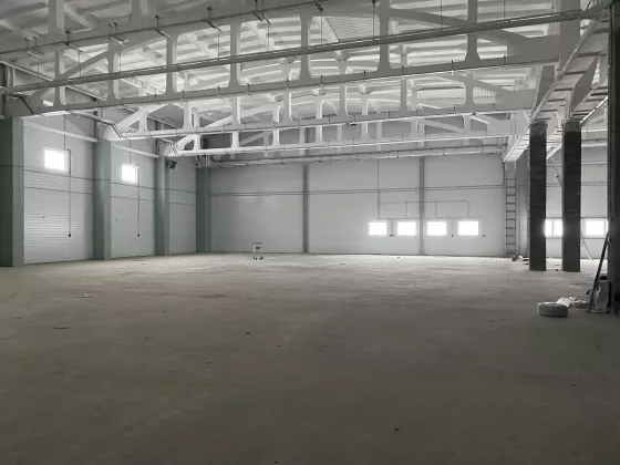 - 6 900 кв.м., помещение состоит из 2-х уровней: 1-й уровень - 3 400 кв.м., высота потолков 7,2 метра (до балки перекрытия - 6 метров), 2-й уровень - 3 400 кв.м., высота потолков 4,6 метра. Свободная планировка, размеры площади 48х144 м, обеспыленные полы с эксплуатационной нагрузкой до 5 т/кв.м. Помещение расположено на 1 этаже здания, 1 ворота 3х3, есть возможность установки дополнительной входной группы. Помещение оборудовано всеми необходимыми коммуникациями (электроснабжение мощностью до 300 кВт, водоснабжение, водоотведение, теплоснабжение, вентиляция, кондиционирование), автоматической системой пожарной сигнализации и пожаротушения. 2 провайдера интернета – Ростелеком и Гигабит. На прилегающей территории оборудована просторная парковка. Возможна установка автоматической системы пожаротушения. Возможна сдача в аренду части помещения, 550 руб./кв.м. (+ НДС 7%) + к/у.