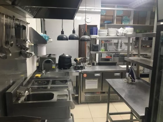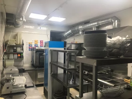 Сдается готовое помещение под ресторан вместе с мебелью и оборудованием. 2 уровня: 1 этаж - 76 кв.м.; цокольный этаж (кухня) - 104 кв.м. Перечень оборудования: аппараты для попкорна, сахарной ваты, хот-догов, блендер, вафельница, дозатор начинки, жаровая поверхность, камеры морозильная и холодильная, ледогенератор, кухонные весы, миксеры, моноблок среднетемпературный, мясорубка, пароконвектомат, плита индукционная, пончиковый аппарат, пресс для цитрусовых, рисоварка, смягчитель воды, моечные ванны, полки, стеллажи, производственный столы (морозильный, холодильные), сплит система низкотемпературная, упаковщик вакуумный, фасовочные напольные весы, шкафы холодильный и шоковой заморозки.